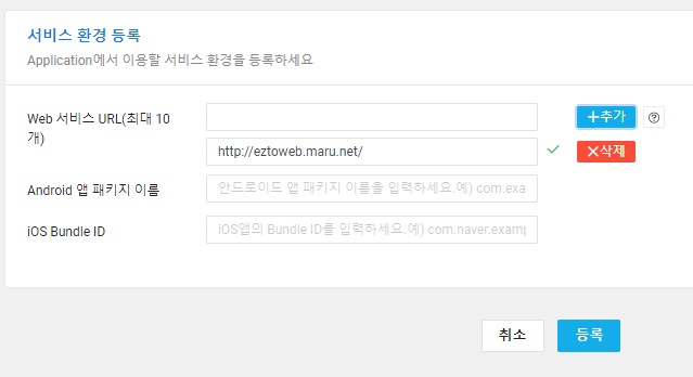 서비스환경에 지도를 사용할 곳의 웹 주소를 입력